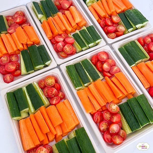 Organic vegetable platters (carrots, cucumbers, sweet cherry tomatoes) |