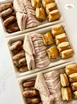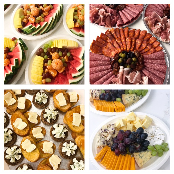 Charcutier platters (various meats/sausages, olives, antipasti, fresh veg bites, salted nut variety, tortilla, dips |