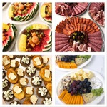 Cheese & biscuits platters (cheddar, wensleydale, brie mozzarella, blue cheeses, mozzarella & sun dried tomato skewers, grapes, oranges, cheese biscuits) |